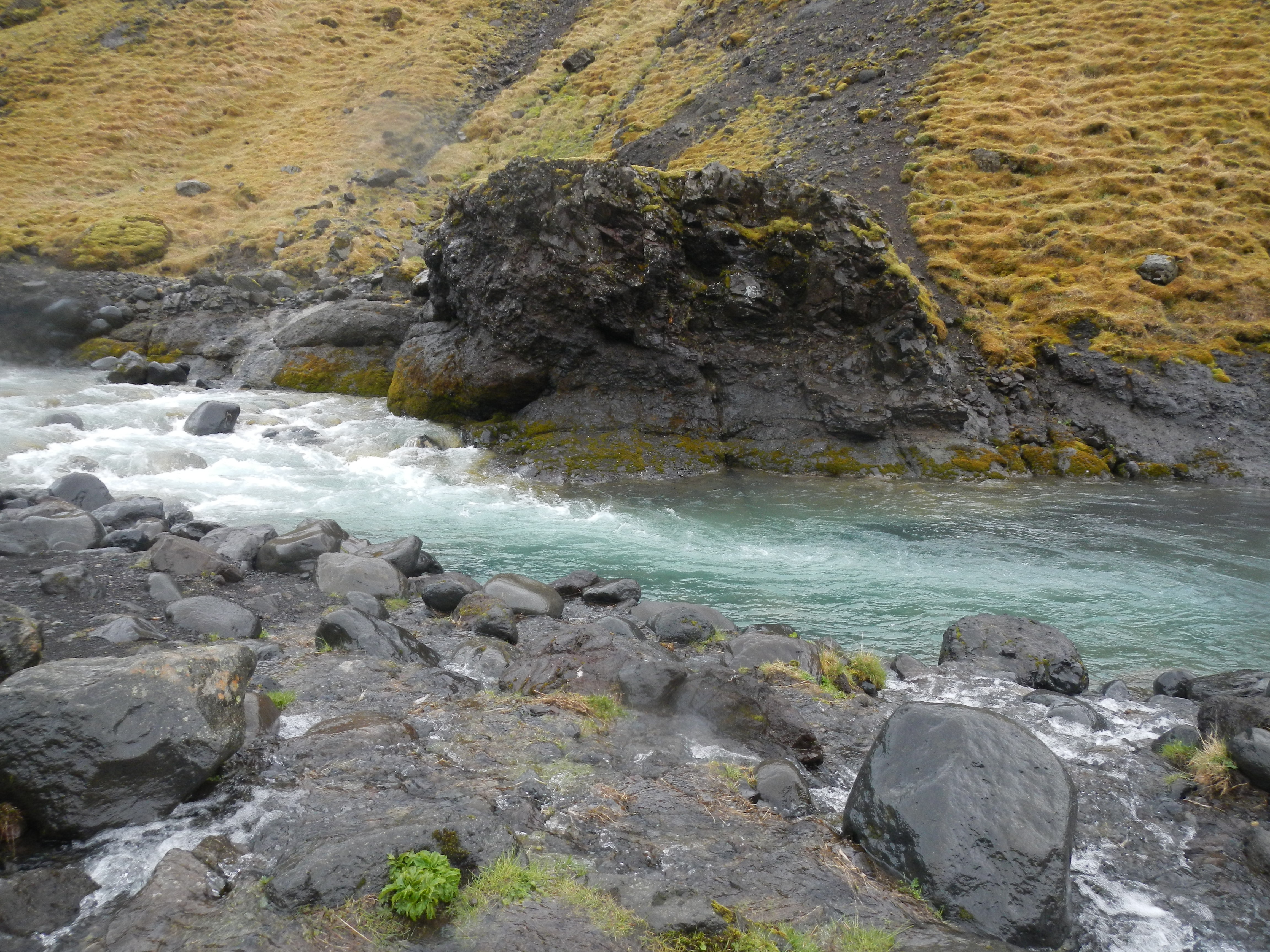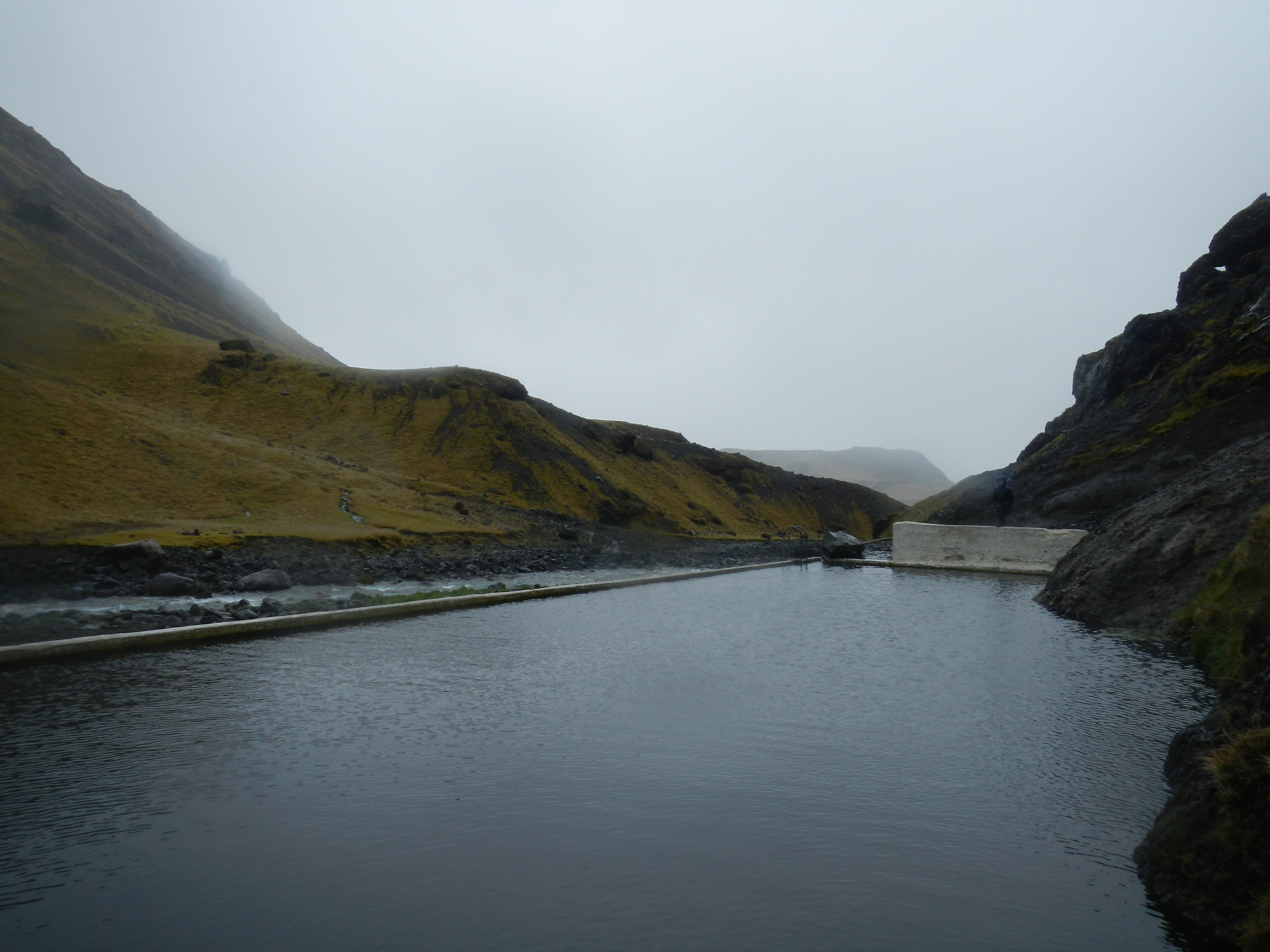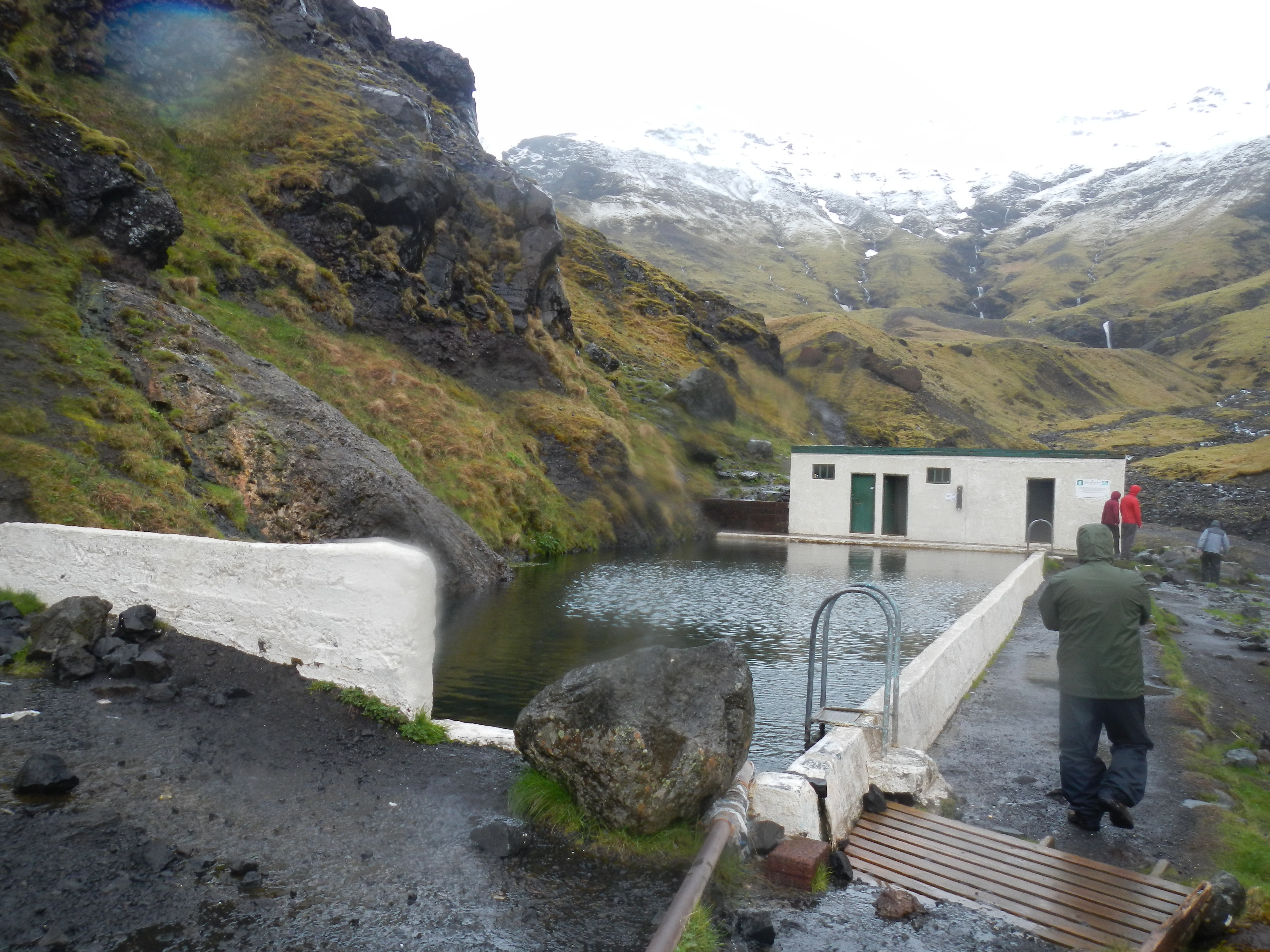 Next on our list was Seljavallalaug. This is a 25 meter outdoor pool where many locals learned to swim. This pool was built in 1923 and is filled by a natural hot spring. It requires a 15-20 minute walk through an incredible valley. Just as you think it must not really be there you come upon it. We were on the ridge above the river when the wind decided to really pick up. It actually lifted me up and was throwing me off that ridge. I screamed for Jeff and he grabbed me and kept from blowing away. I saw a couple ahead of us blowing off as well. They grabbed each other and hunkered down and were blown about three feet across the ground. I had never experienced anything like that. We continued to fight through the wind and made our way through this gorgeous valley until we found the pool. There were only 7-10 people total there when we were. We all felt the water and decided it was too cold to swim. The couple who had blown across the ground in front of us decided to go for it though. They changed, jumped in, took a quick lap, and got out. The rest of us were quite impressed. Had it been a less windy and slightly warmer day we probably would have joined them. The scenery was well worth the hike though.