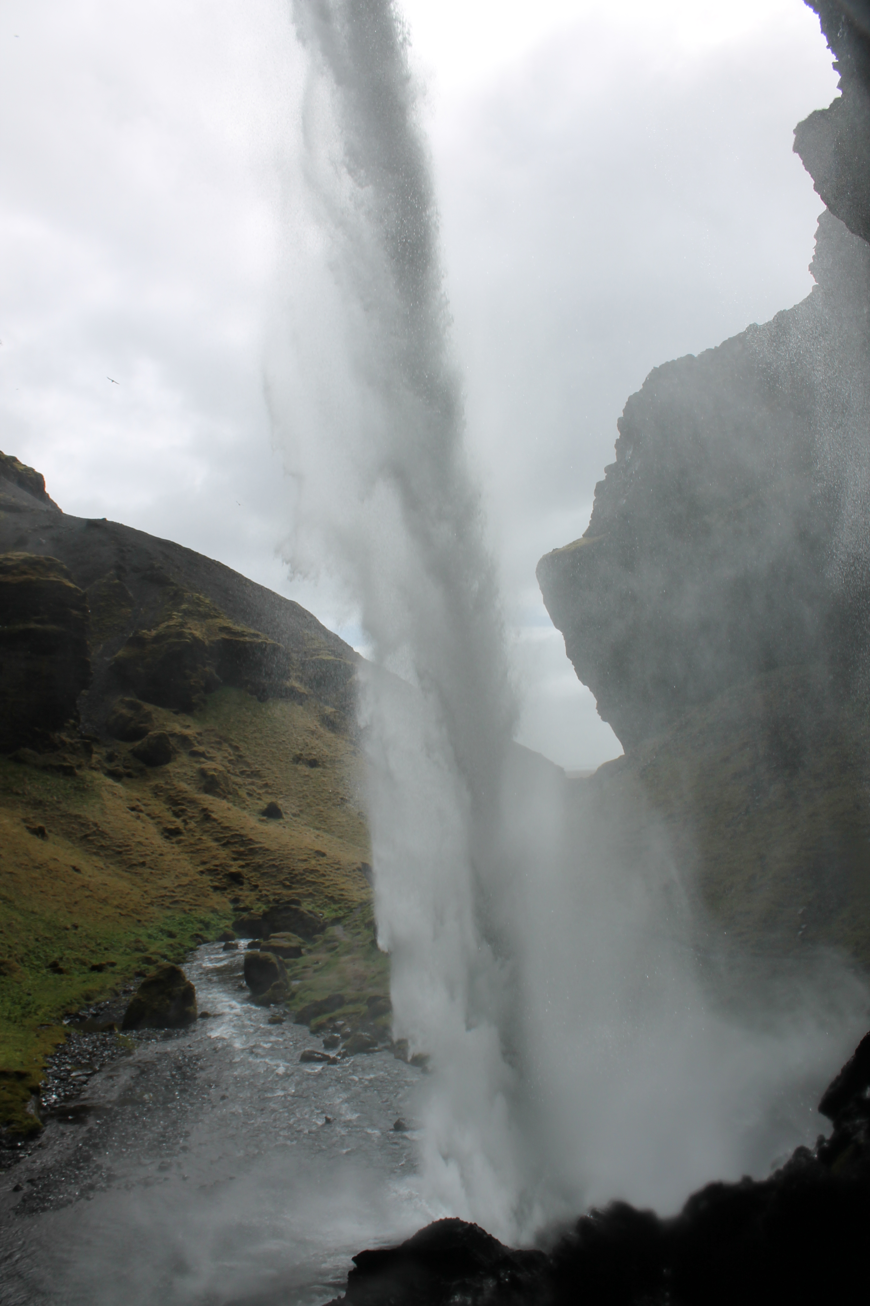 Kvernufoss was shaped by lava rock formations which cause the water to fall into two narrow slots out of the rocks in a splashing stream. We walked behind the falls and enjoyed every second of this glorious place. The best part was that we truly had it to ourselves. We saw one couple leaving as we were hiking in and then we turned it over to another couple as we were leaving. We definitely enjoyed the hidden gem.