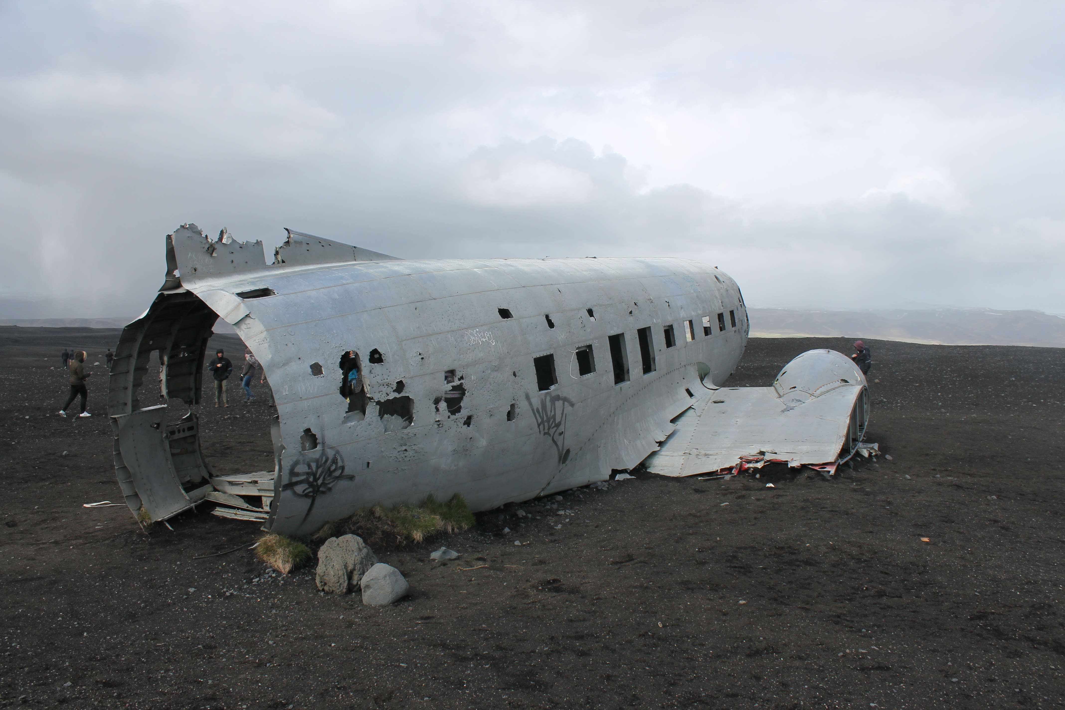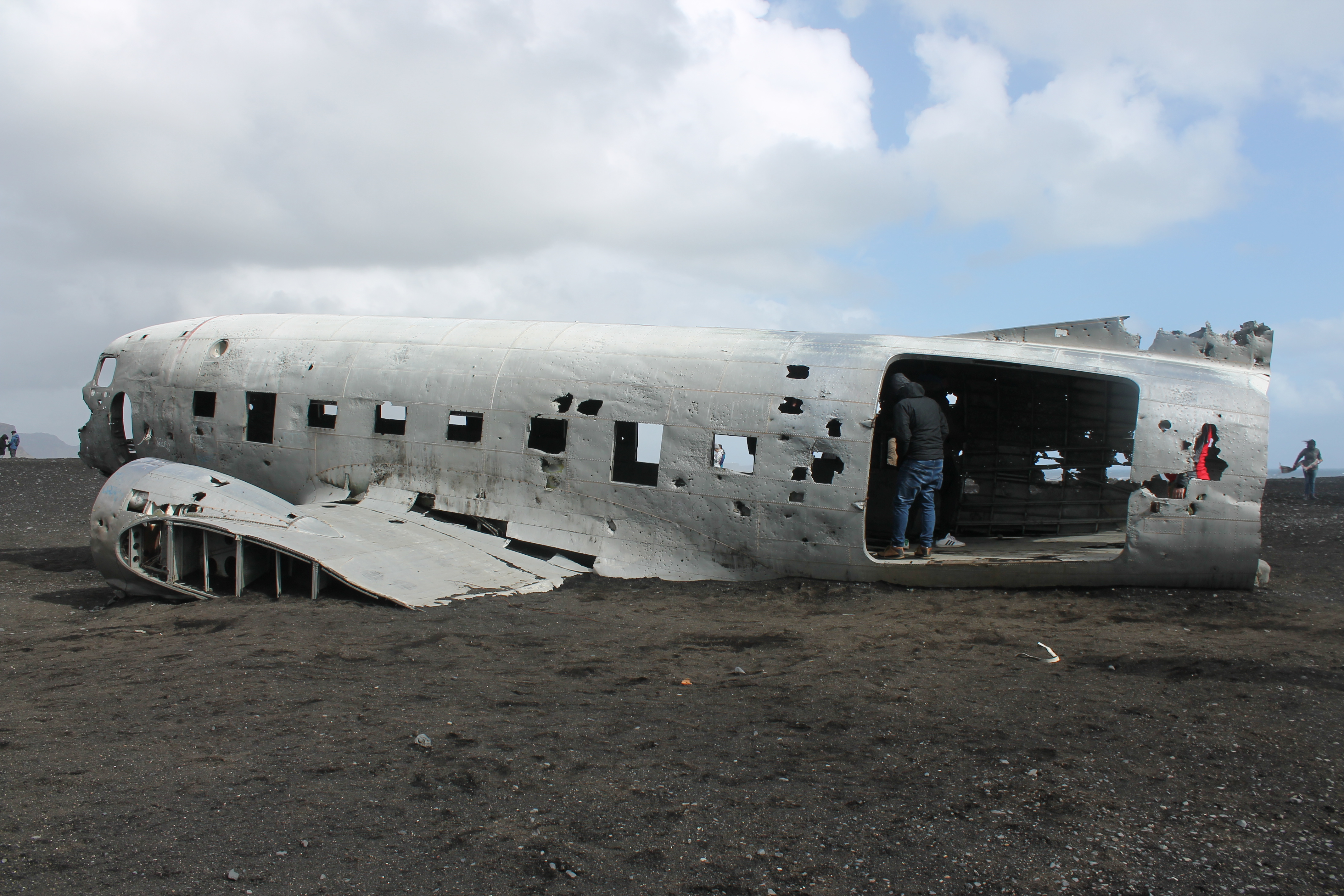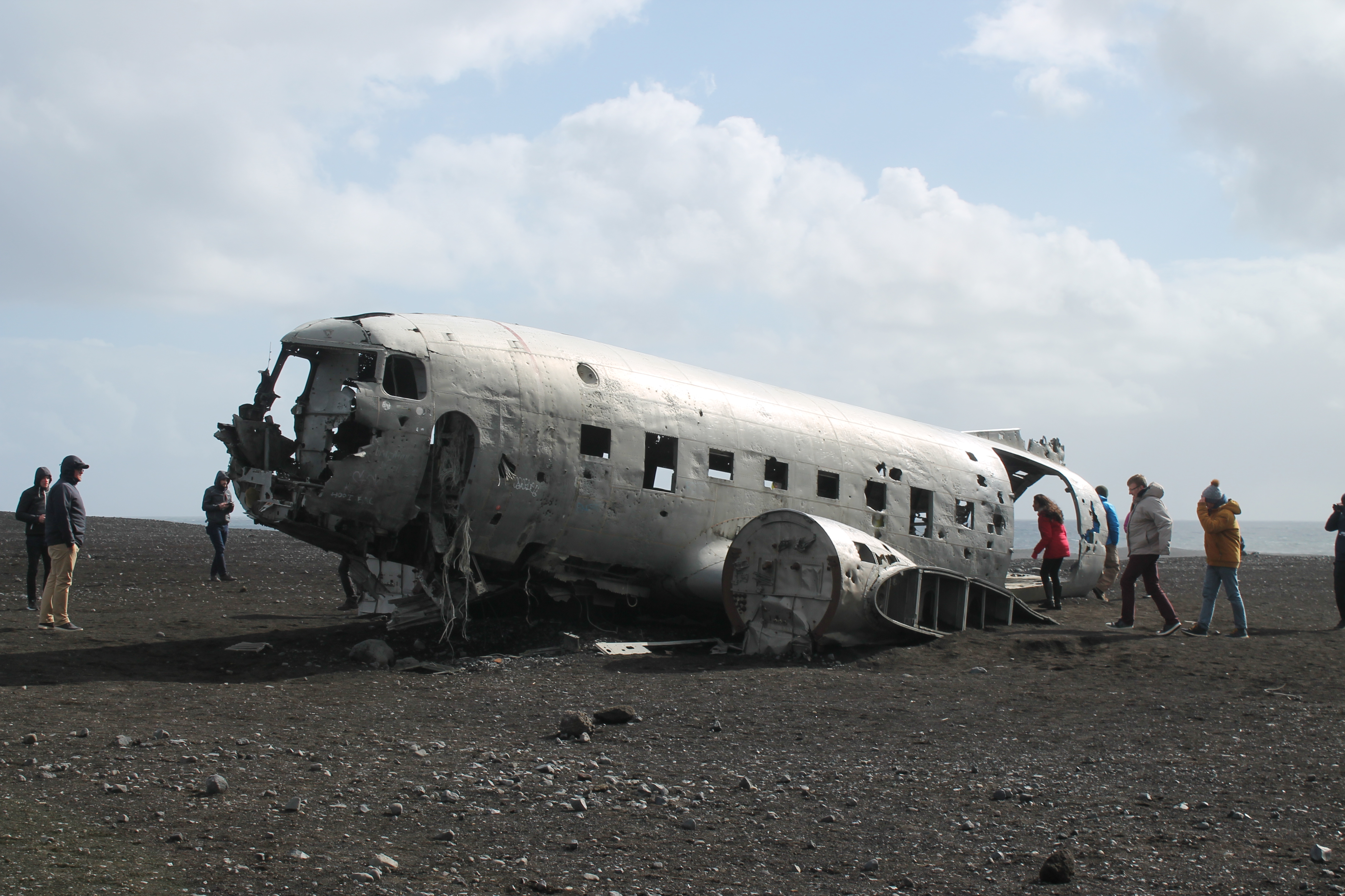 Our next stop was the one place we maybe should have left out of our itinerary. To their credit When In Iceland did not include this in our original itinerary. My relentless planning made me think this was a site I did not want to miss even though so many others in blogs and posts had said this could easily be skipped. They were right. But even saying that now with the way it ended I am glad we did not skip it. We were now at the Sólheimasandur Plane Wreck. This is the wreckage of a US Navy DC 3 from 1973 on a beautiful black sand beach. The pilot was forced to crash land when he ran out of fuel. I am sure he endured a lot of teasing as he simply had switched to the wrong fuel tank. Everyone survived. The site is a favorite of photographers, especially with the Northern Lights. At one time you could drive to the site. Now, however it is a 1 hour hike one way.